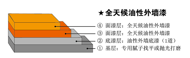 好雅麗全天候油性外墻漆為單組份、常溫自干、無苯環(huán)保型的溶劑性涂料。涂膜強(qiáng)韌,具有耐候保護(hù)色、耐酸抗堿、強(qiáng)效砼基和鋼基面附著力、抗污可自潔的全面特性。尤其突出抗沾污性,適用于有高耐久的保色、保潔性外墻涂裝。
